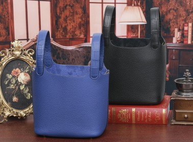 マット加工ワニ革&牛革 拼接 手提げカゴ型バッグ 3331H-TC