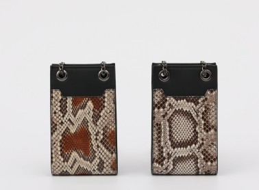 カジュアル ヘビ革&牛革 拼接 スマホバッグ 3473SC